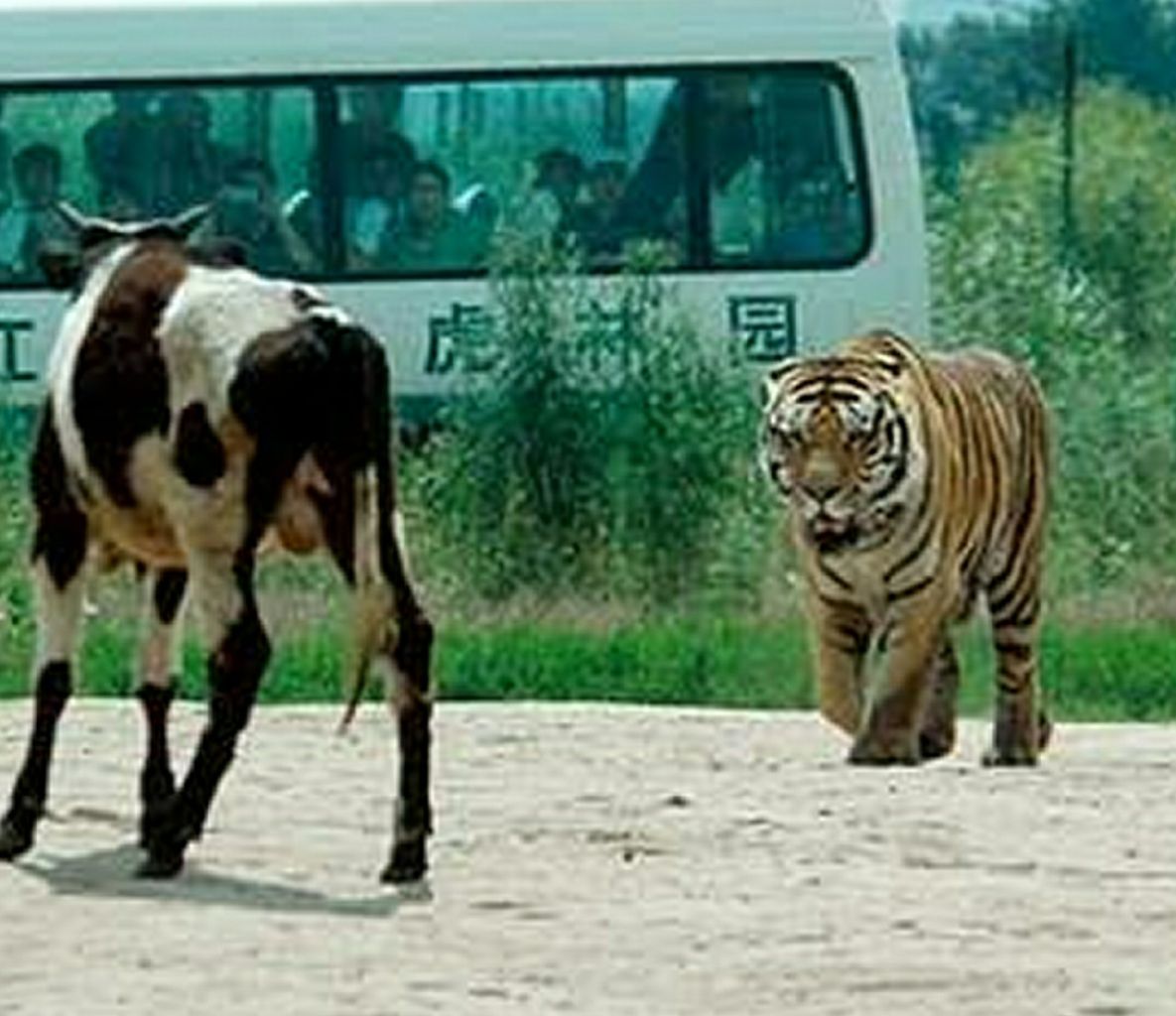 牛対虎は牛が頭突したら虎に勝てるな!