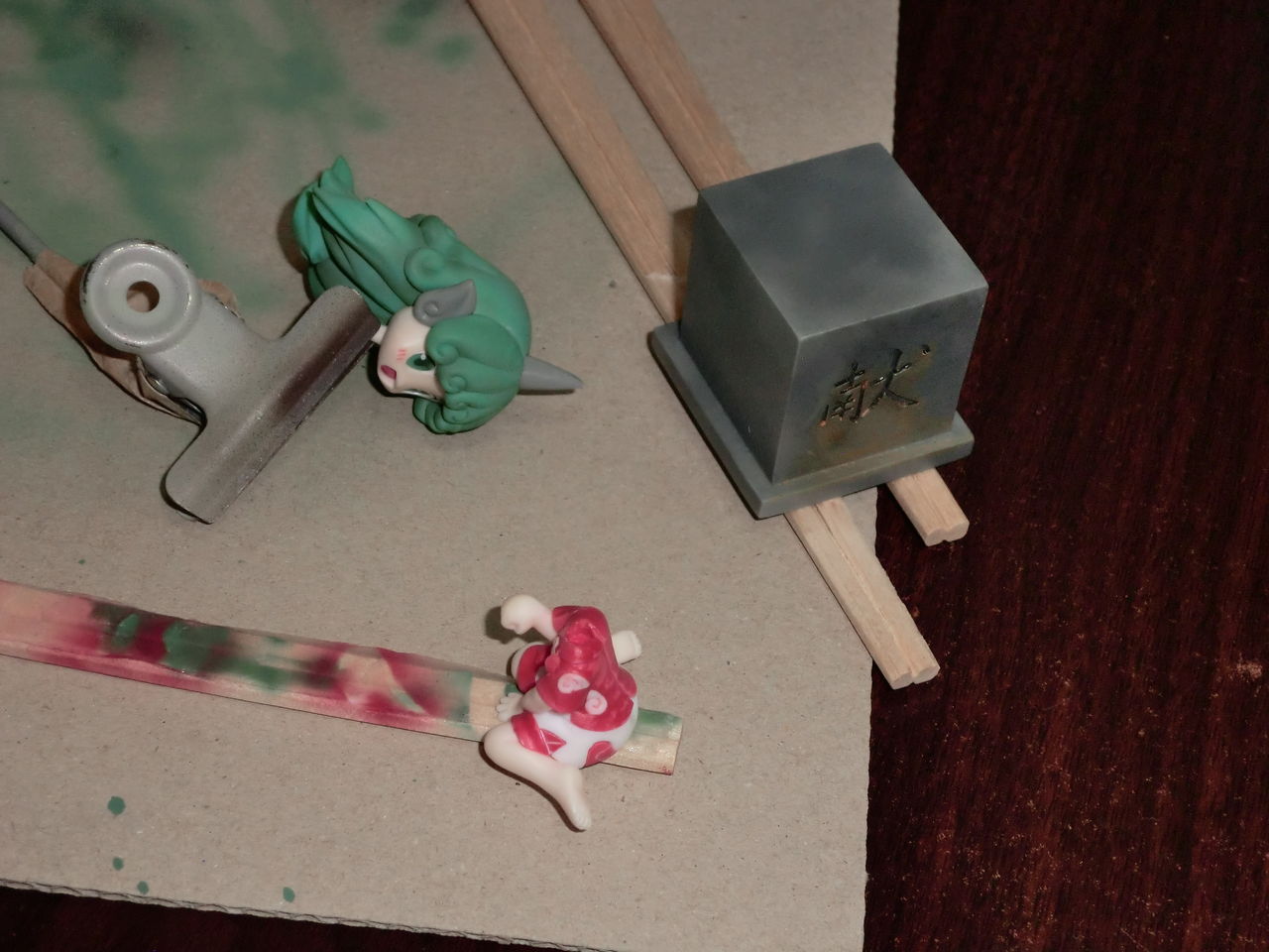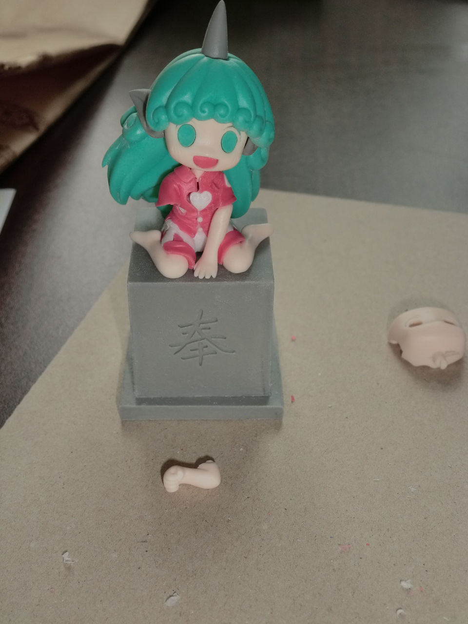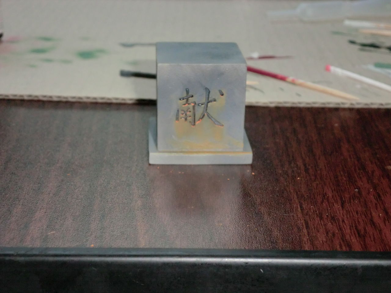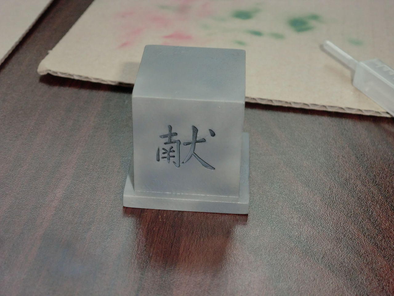 台座の文字の部分だけ汚すと下部分がきれいすぎるからに土や砂汚れとか付けたほうがいいと思った