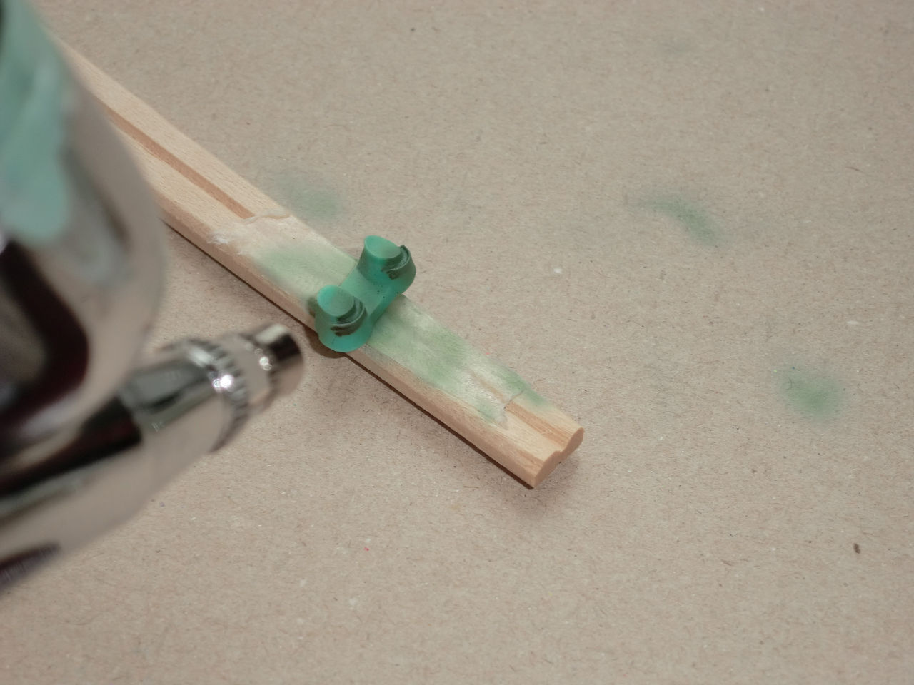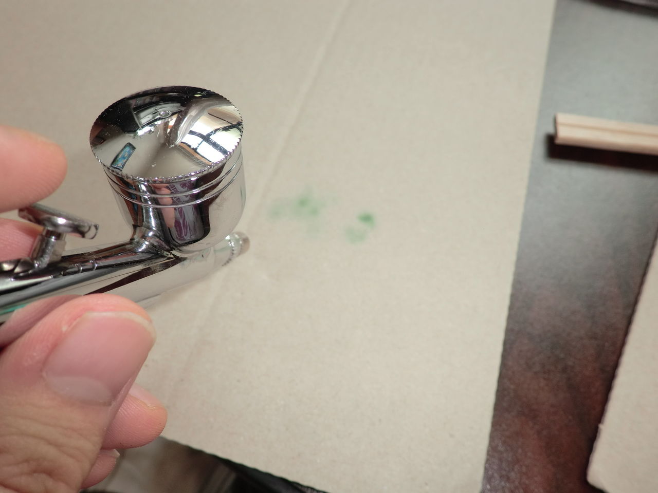 ちょっと濃い緑のため白を混ぜてからエアブラシで吹くことにする