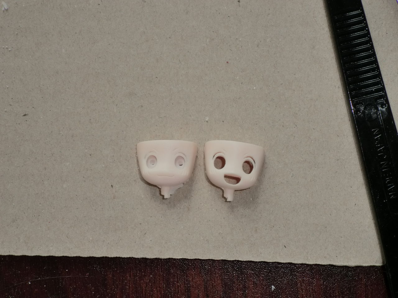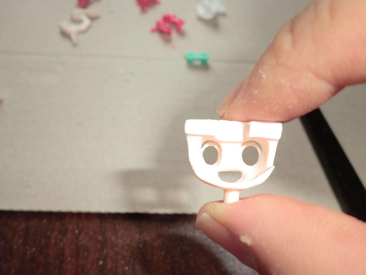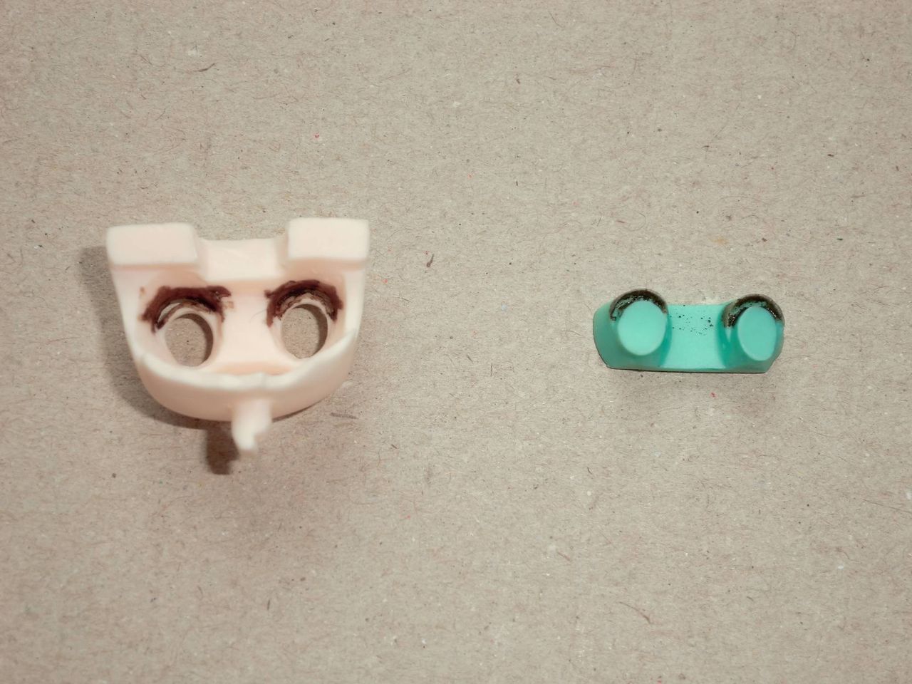 各パーツの分割部分や写真のような顔パーツの目部分に薄い膜があるのでそちらを薄刃カッターで除いていく