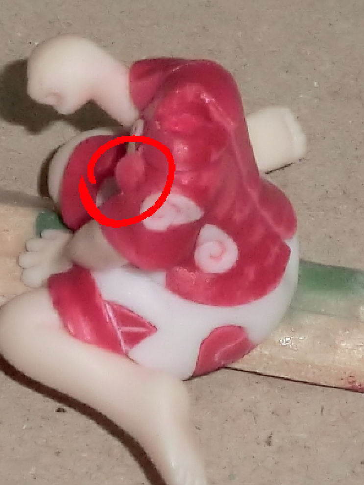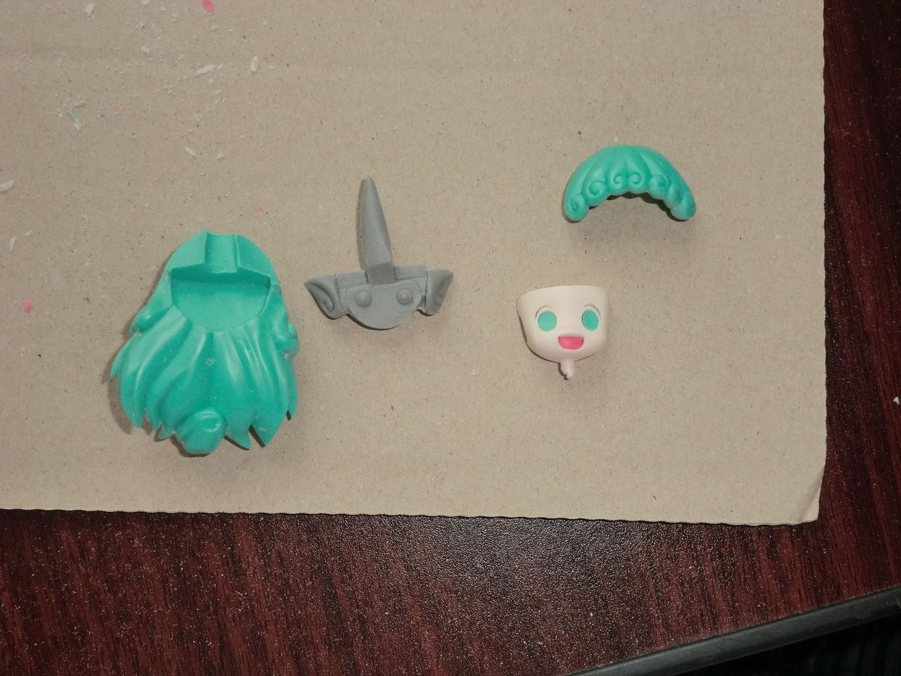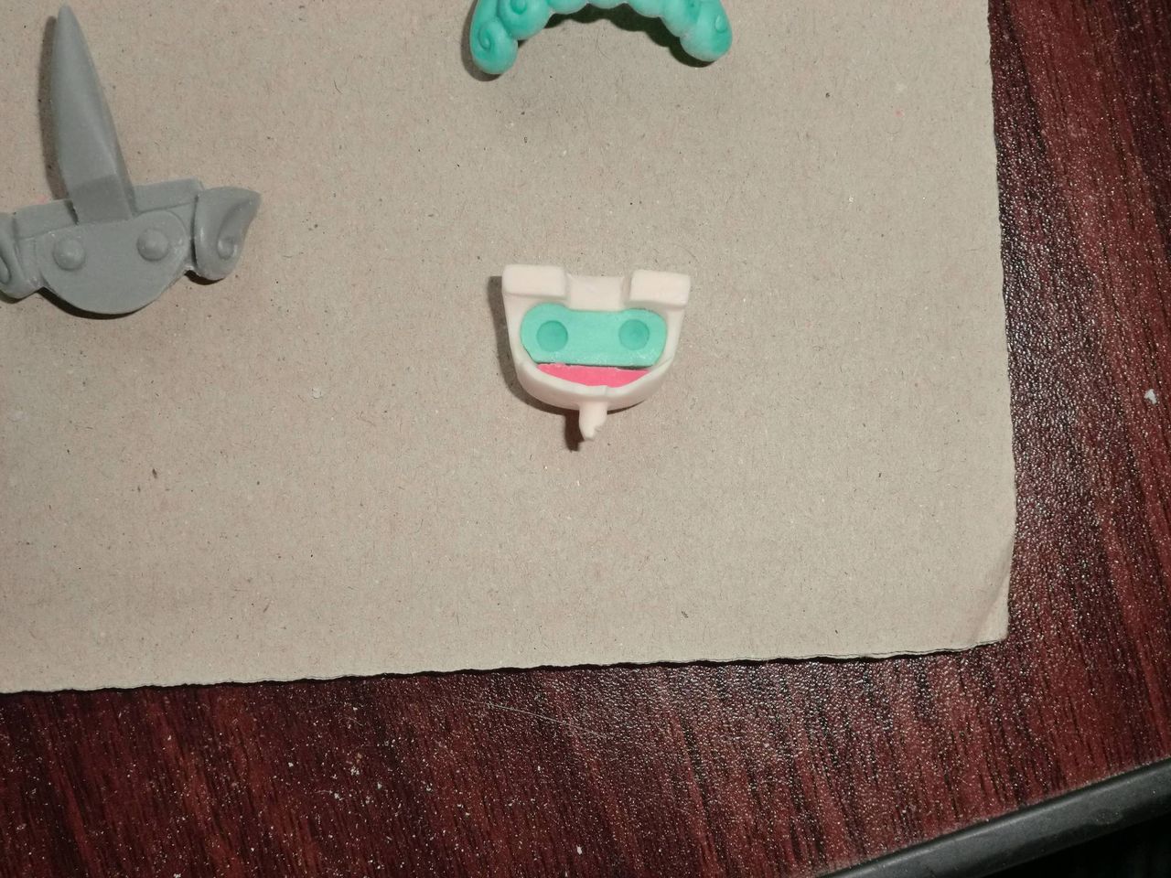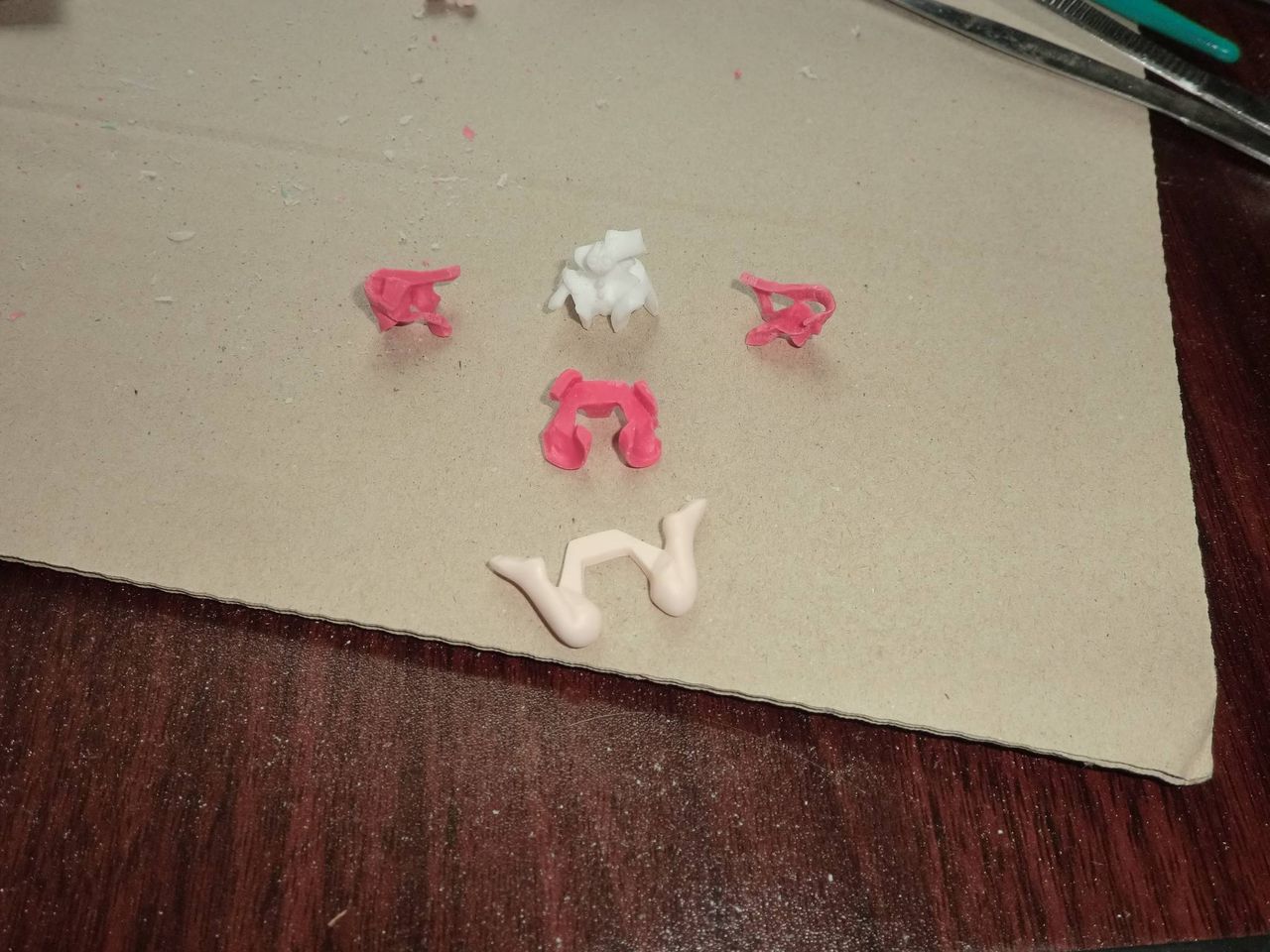 各パーツの分割部分や写真のような顔パーツの目部分に薄い膜があるのでそちらを薄刃カッターで除いていく
