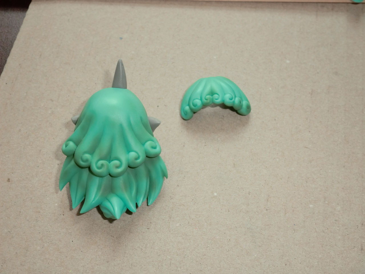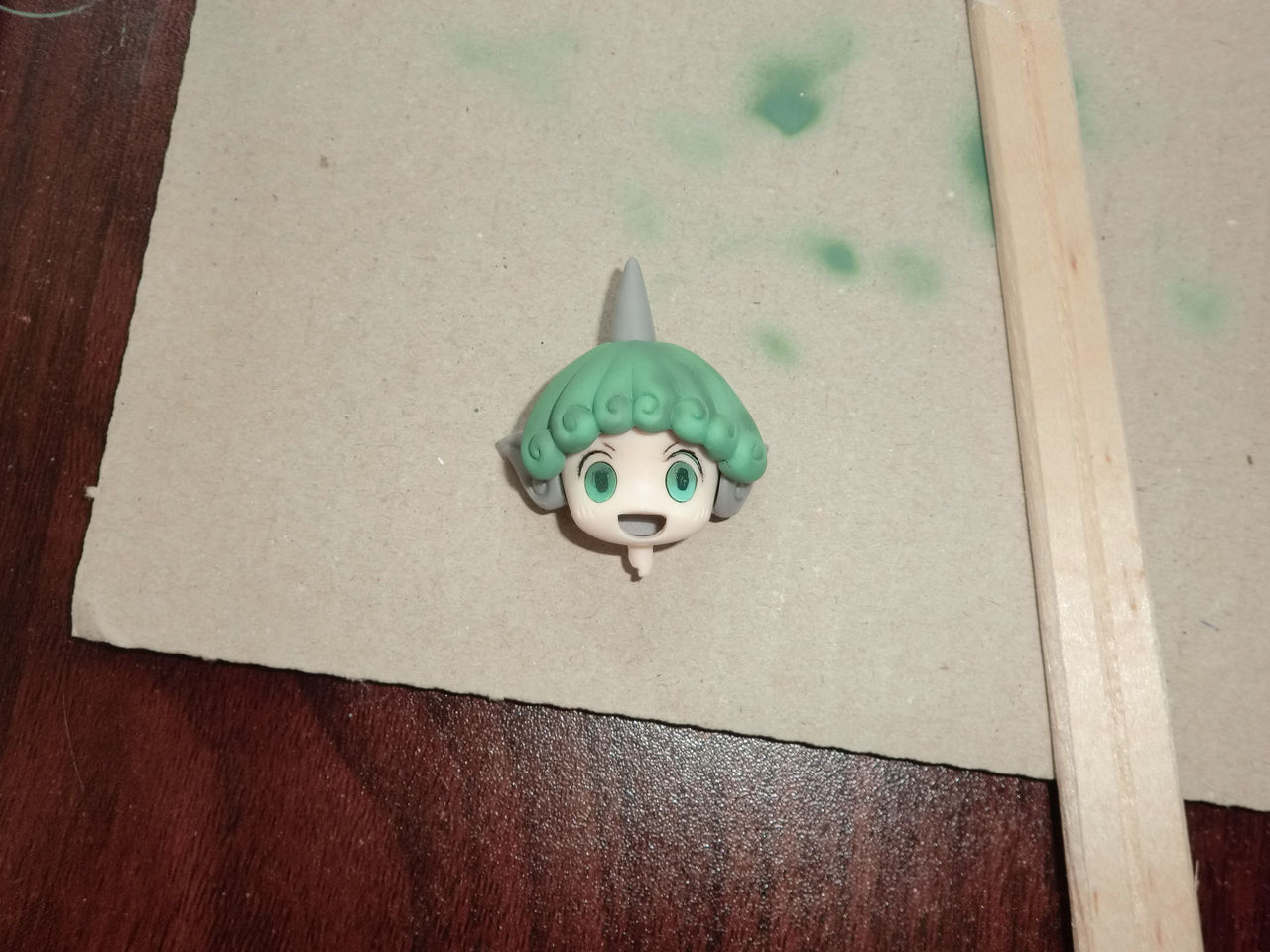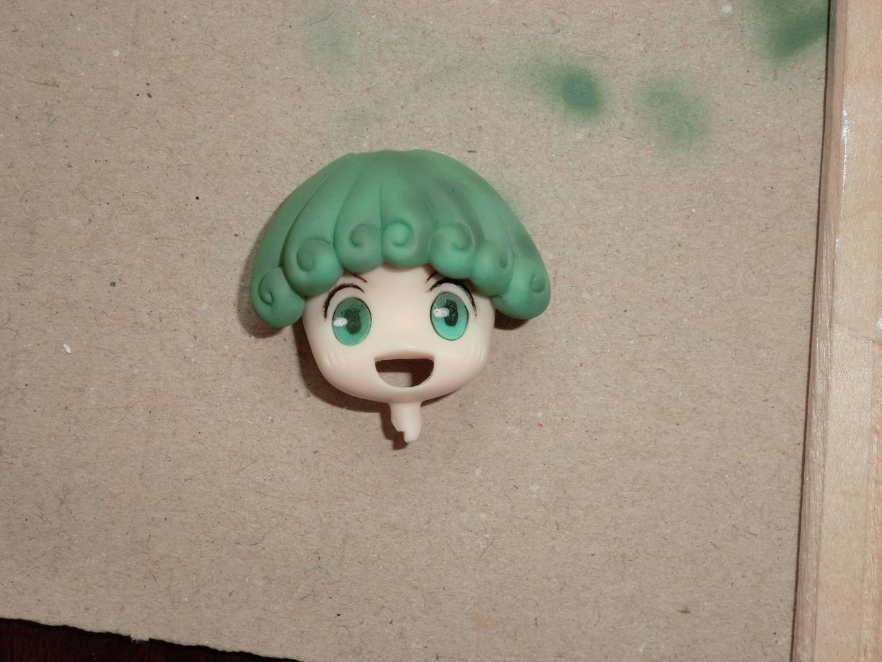 髪は緑系統なのでその色を濃くしたものを髪の「奥まっている箇所」を主に吹きつける