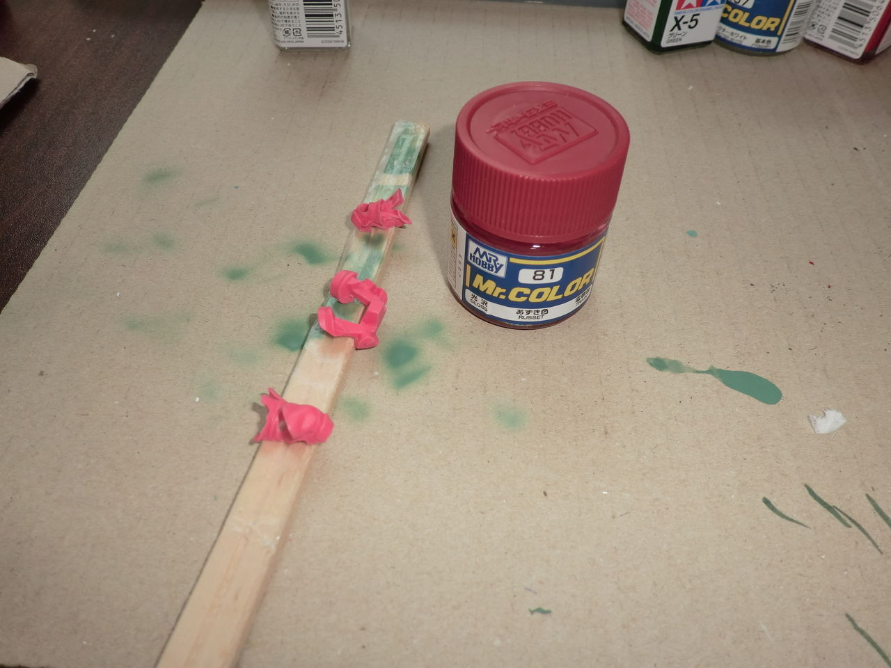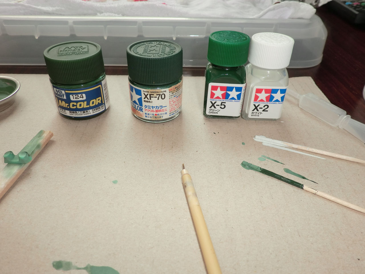 その後出来たパーツの色合いを何度か見ながら緑を足して濃くしたり白を足して薄くしたり