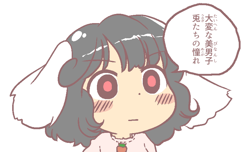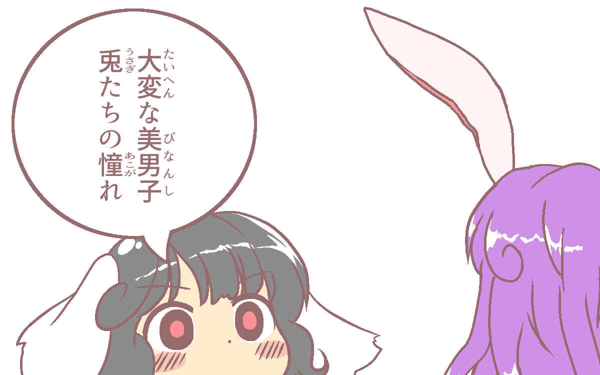 >美男子っていうのは百歩譲っていいとして兎たちの憧れってのは大袈裟すぎるよてゐちゃん…