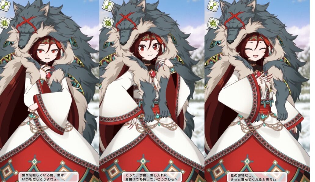 影狼がおしゃれしたというよりかは、周りの誰かにこの衣装がいいと着せられている気がしてくる