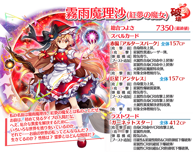 霧雨の名前がロストしたせいで魔法適正の水要素無くなって星特化してるっぽいのが何か良い