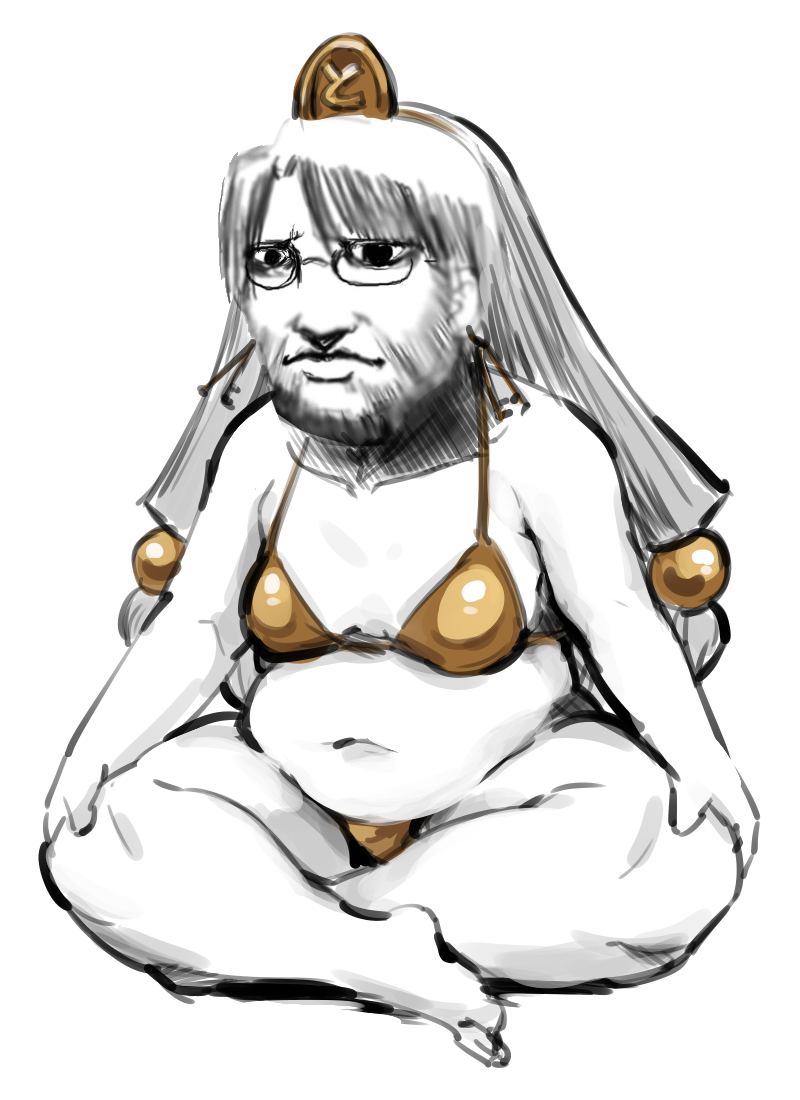 胡座をかいて座ってる金ビキニ馴子ちゃん