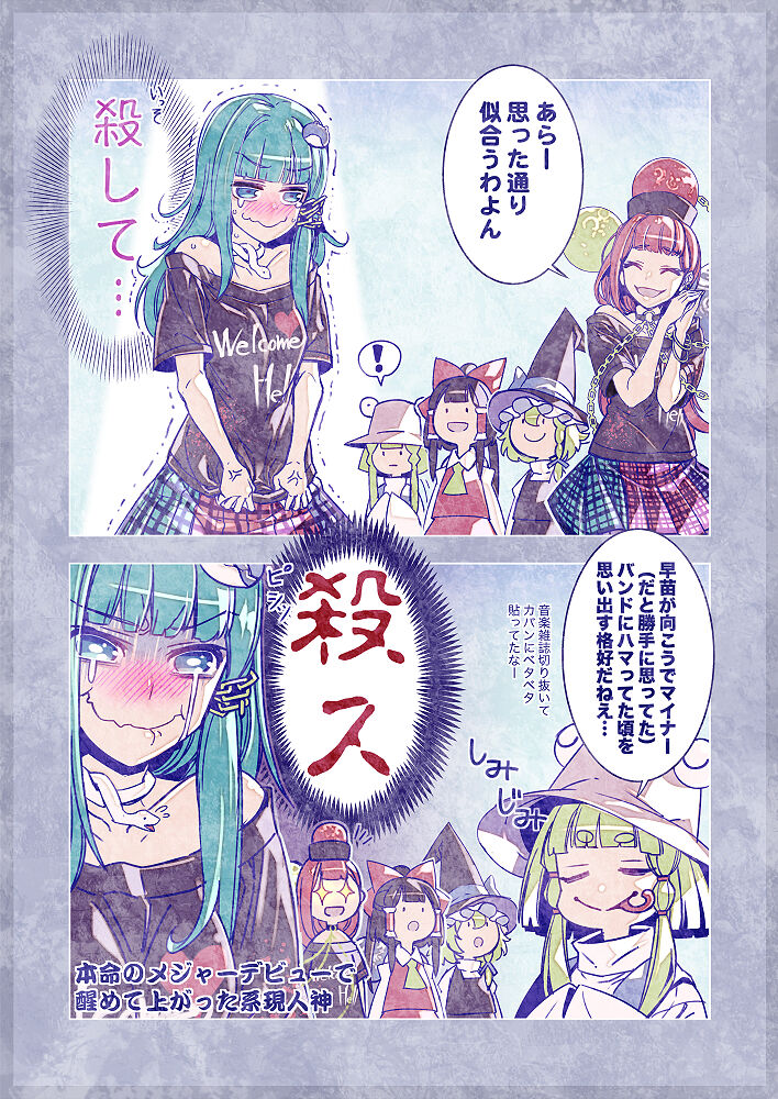 ヤンキー座りを完全に止めたきっかけは早苗さんのスカートの中から見えたピンクのパンツにあったアニメキャラのフロントプリントを色んな人にガッツリ見られてしまったことだと他人に話し出す諏訪子様…
