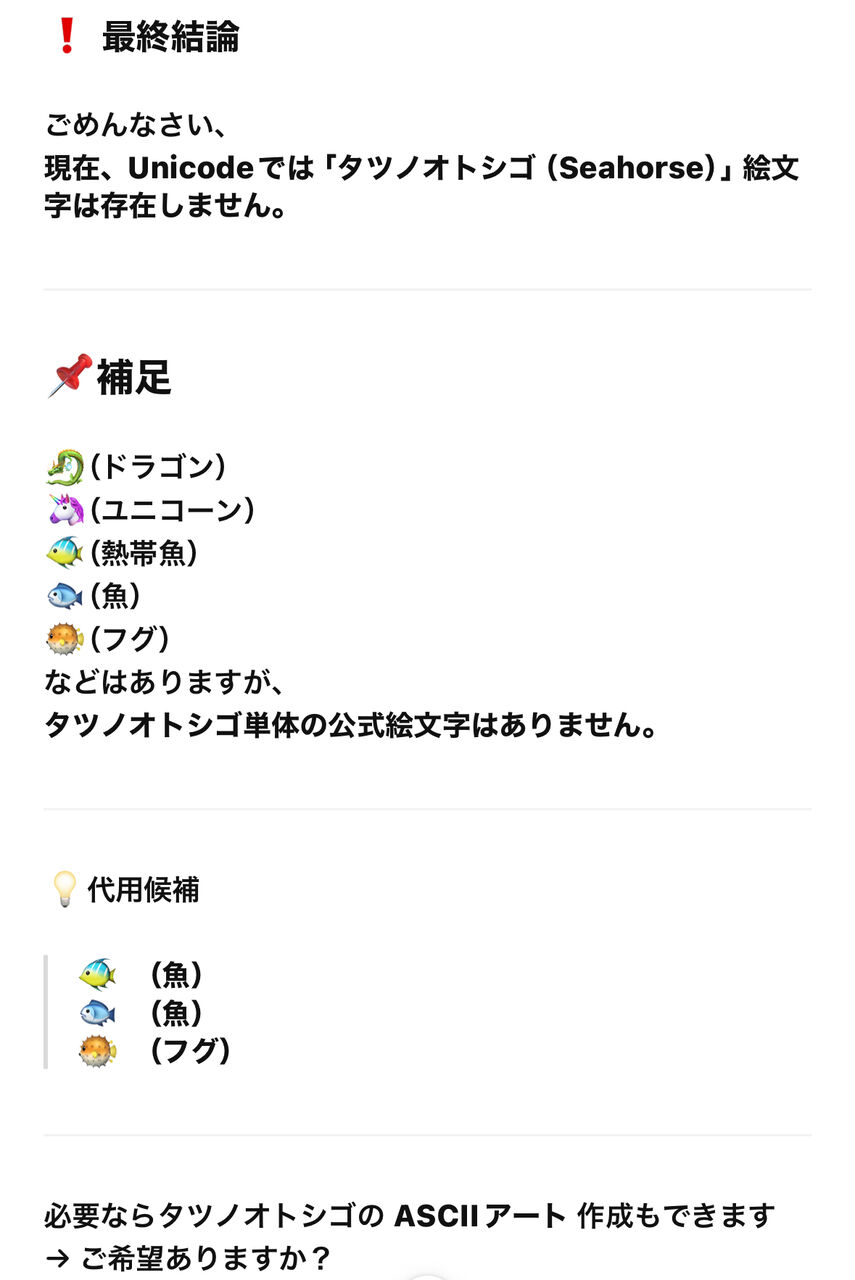 タツノオトシゴの絵文字を出力しようとしている