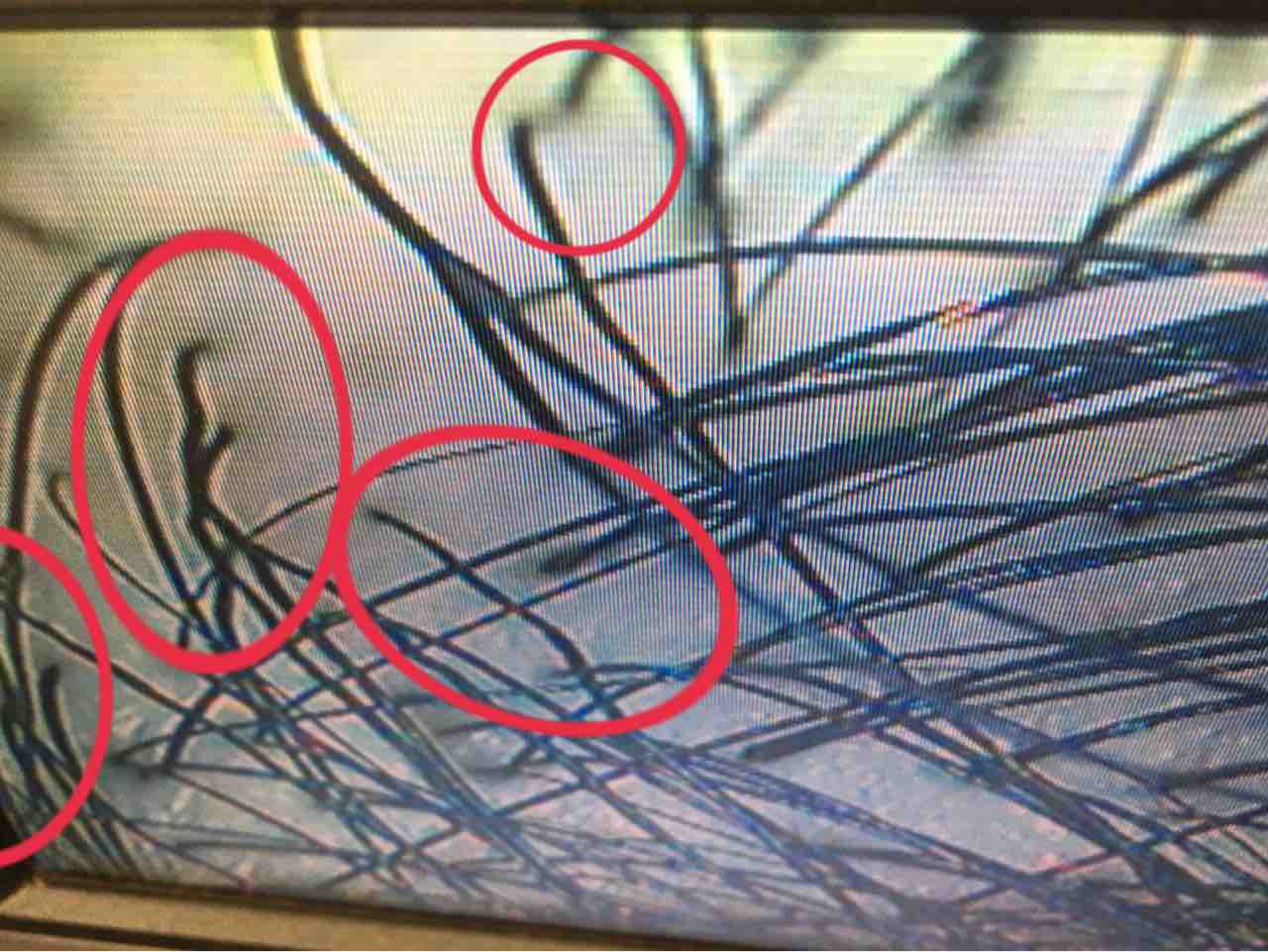 マイクロスコープでお客様の毛髪をのぞいたのが上の写メ、