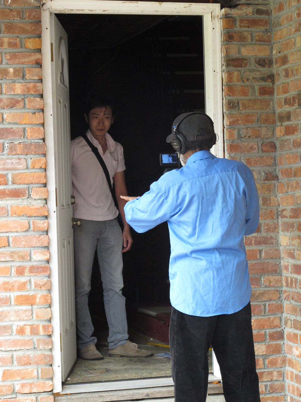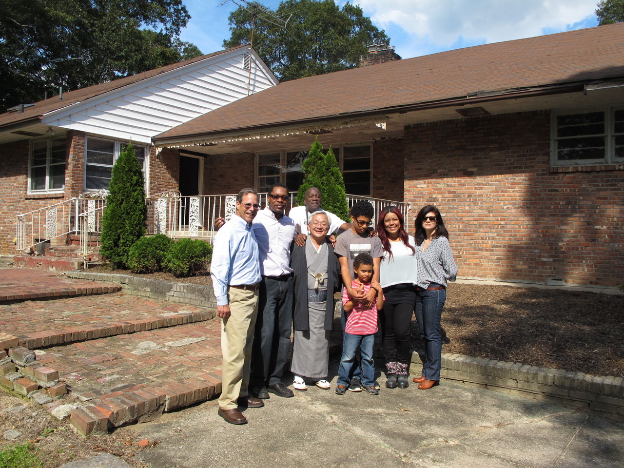 Ravi's family with Ron, Fuji and Hollis, gathering in front of The Coltrane Home