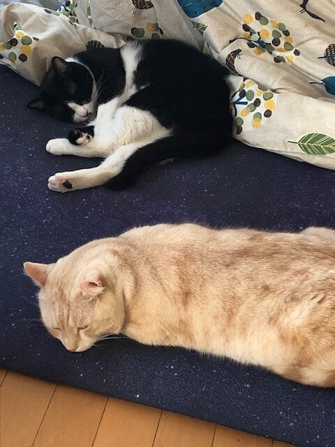 お兄ちゃん猫のルーク君とはじゃれて遊べるようになり、寝る時も側で寝ているそうです😺😽