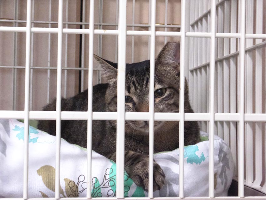 しばらく反省させるため、最低でも今日1日はケージで過ごしてもらおうかな。