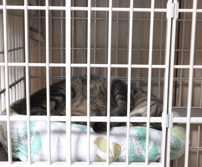 今日、ダルくんが自らケージの中に入って、ベッドに居座っていたので、ケージのドアを全部締めて閉じ込めました。