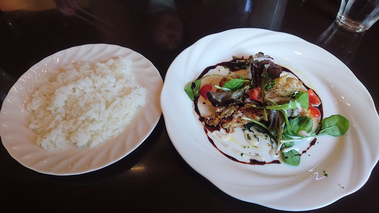 「白身魚のソテー・バルサミコソース」。白身魚は鱈でした。下味は濃いめだがバルサミコソースの味わいもよく、インスタ映えしそうなビジュアルです。