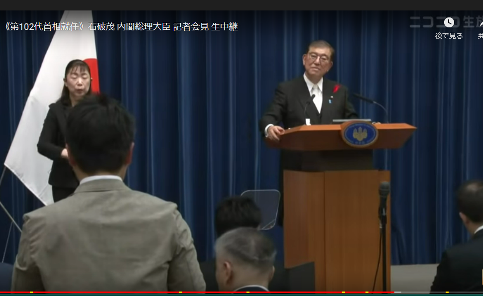 石破新首相が記者会見(YouTubeニコニコニュースより)