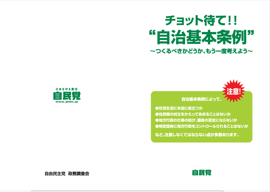 自民党政策パンフレット「ちょっと待て自治基本条例」