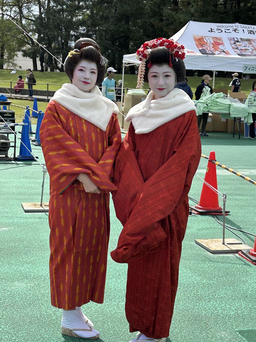 ゴールで迎えてもらいました酒田の舞妓さんです。