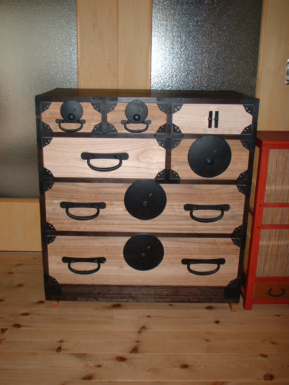 というのが、お客様のご要望です。余談ですが、この時代(戦後すぐの頃)は材料が豊富ではなかったらしく、お嫁入りの時 一棹は総桐、あとは三方桐を持って行った・・という話を聞きました。