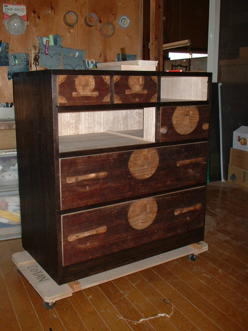 以前、虫食いがひどくて再生方法を模索中だった時代箪笥。