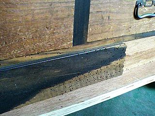大事な黒柿の部分は なんとか残したいので、今回初めて 『木固め剤』 を使ってみました。