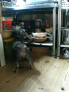 そして更に吠える。 調理台の下に お気に入りのボールが入ってしまったのかなぁ〜? と覗いてみるが、ない。