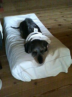「すご〜い! 頑張ってる〜!」 と横を見たら、うちのダックスは 遊び疲れて 寝ていた