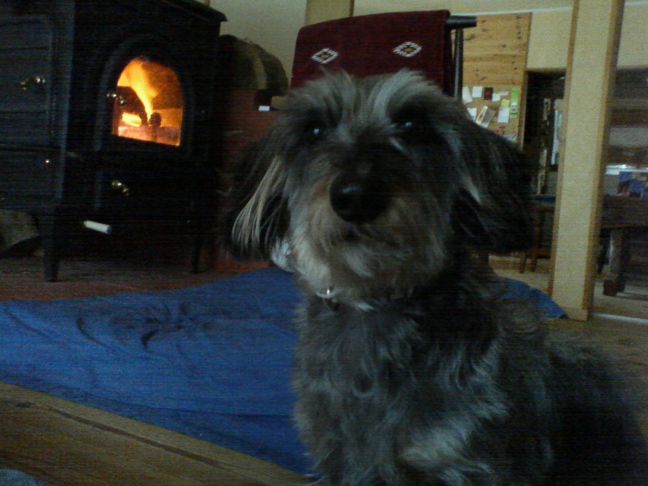 左助はジ〜ッと外を見ている。仕事の途中でウンチ散歩に行かなくちゃ・・・