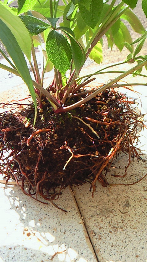 ここまで大きな株になると ちょっとくらい根を切っても問題はないので、結構手荒に作業をします。
