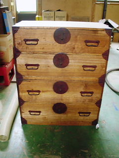 冬の間に直しておいた箪笥に 漆を塗って・・ 苦労して作った金具を付けて、ようやく納品が始まりました。