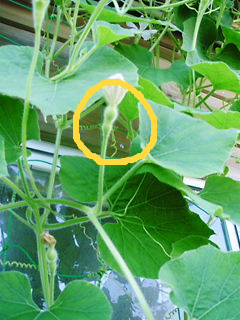 西陽が長く当たる脱衣場の窓には千成瓢箪(センナリヒョウタン) を植えてみました。