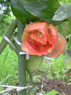 パワーの源は トマトかなぁ?うちの畑のトマトは 植え付け後の天候不良のせいか