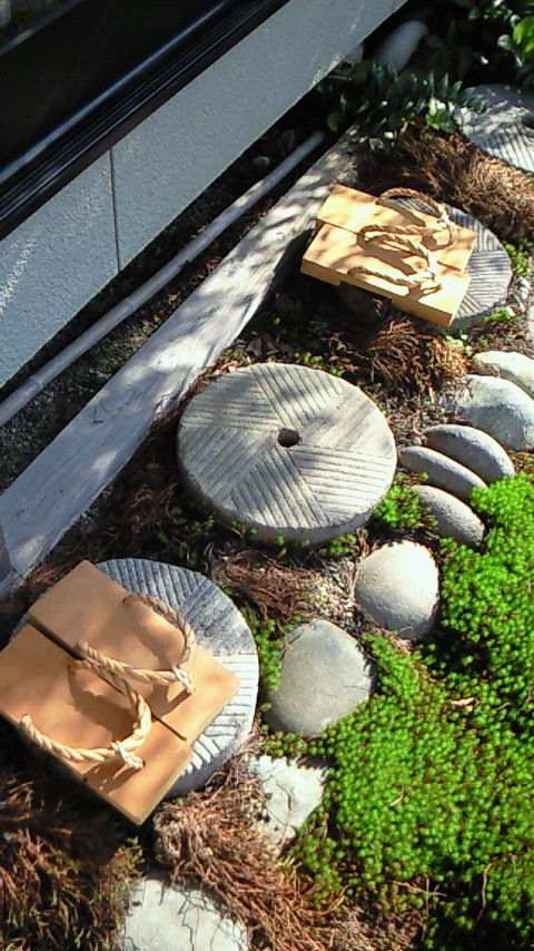 から 用意された下駄を履いて 飛び石の上を歩き・・