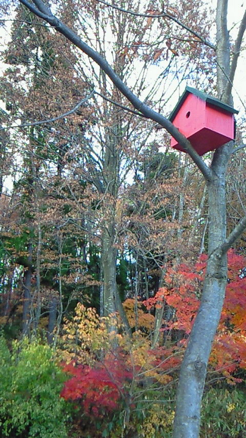 工房の入り口に 増設されたベランダは徐々に充実してきていて、野鳥の餌場や 巣箱が六つも・・