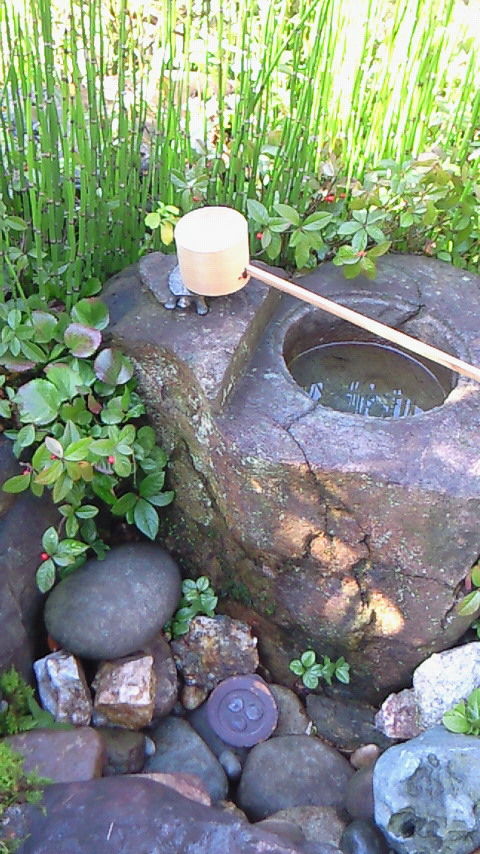 蹲 (つくばい) を使って 手と口を清め、躙口 (にじりぐち) から 席入りします・・・ が