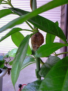 今朝、玄関前の鉢植えに目をやると・・ いつの間に?(そういえば大きなカマキリが 何日も居座ってたっけ)