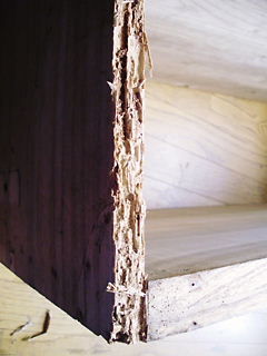 乾かしたところで木固め剤を注入して少し強度を持たせ 虫穴