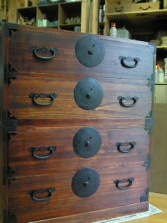 毎年、梅雨時は 漆仕上げの箪笥を直します。