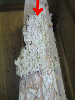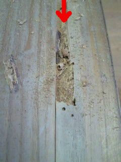 左の箇所は 最初にタンスを作る際、桐の葉脈部分を埋めた材料を食べているのです。この部分を取り除いて、新材で埋めれば大丈夫!