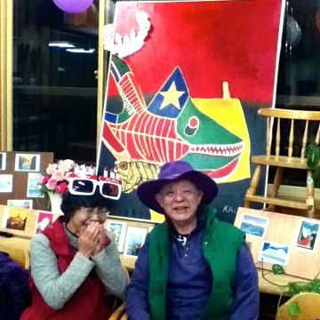 お世話になっている方の喜寿のお祝いをしよう! ということで、紫色の被り物の発注がきました。