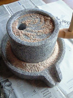 新しい挽き臼を いきなり使い始めたから、石刃の角が少しずつ粉に混じってしまったようで