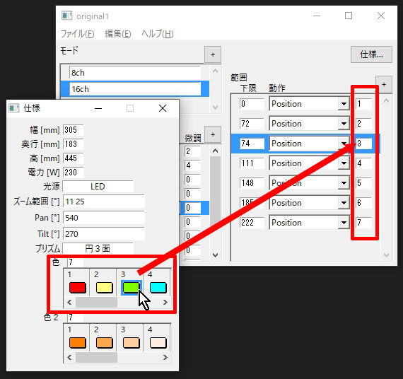 ÈùÄ´¤Ï16bit¥â¡¼¥É¡Ê¥Õ¥¡¥¤¥ó¥â¡¼¥É¡Ë¤Î¾ì¹ç¤Ë¡¢³ºÅö¤¹¤ëDMX¥Á¥ã¥ó¥Í¥ë¤ò»ØÄꤷ¤Þ¤¹¡£