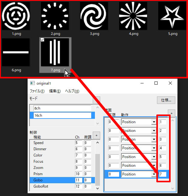 À©¸æ¤ÇÀßÄꤷ¤¿µ¡Ç½¤Ë¤Ï¡¢GOBO¤ä¥«¥é¡¼¤Ê¤É¡¢DMX¥ì¥Ù¥ë¤Ë¤è¤Ã¤ÆÊ£¿ô¤ÎÁªÂò»è¤ò»ý¤Ä¤â¤Î¤¬¤¢¤ê¤Þ¤¹¡£