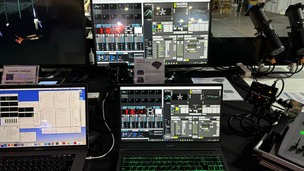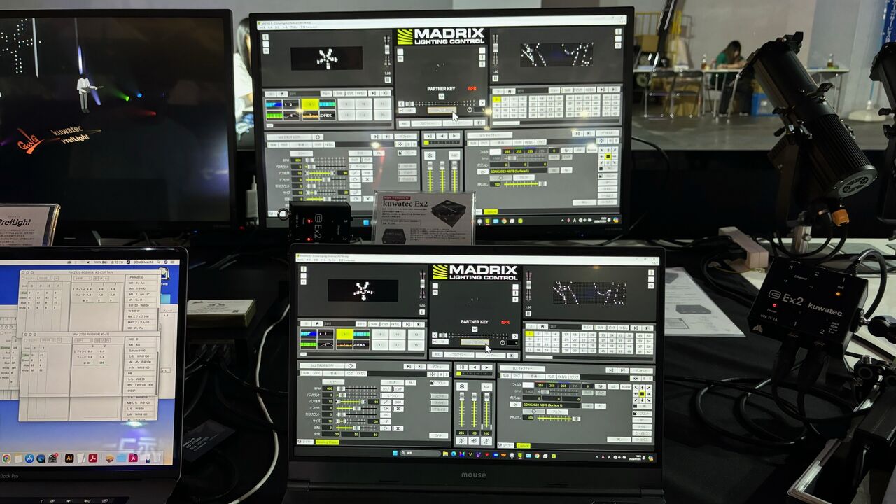 Ʊ»þ¤ËWindowsPC¤Ç¡ÖMADRIX 5¡×¤òÁàºî¤·¡¢¤½¤Î¥¨¥Õ¥§¥¯¥È¥Ç¡¼¥¿¡ÊArt-Net¡Ë¤òPrefLight¤Ç¼õ¤±¤Æ²èÌ̾å¤Ë¥ì¥¤¥¢¥¦¥È¤·¤¿LED¥Ñ¥Í¥ë¡ÊLED¥Þ¥È¥ê¥¯¥¹¡Ë¤Ë¤â½ÐÎϤ·¤Æ¤¤¤Þ¤¹¡£