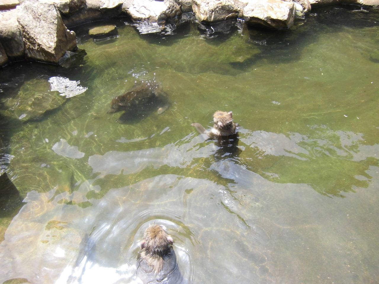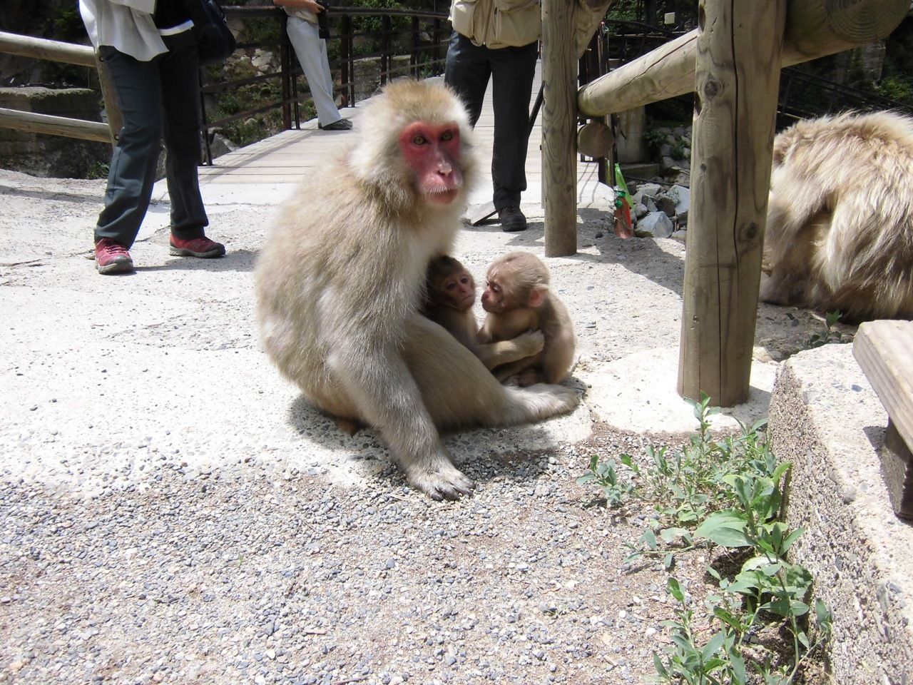 赤ん坊達のお母さんは健在です。移動の際などはお母さんにくっつきますが、公苑でくつろいでいる時なんかにこのメスザルが面倒を見ている姿をよくみます。