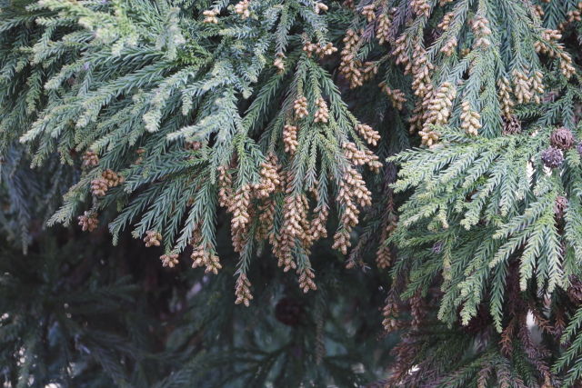 スギ花粉の飛散もピークに近いようだ。たっぷり花粉を湛えた花穂も膨らんで、枝が揺れると煙のように花粉が舞いたつ。以前は何ともなかったんだが最近になって花粉症と思わしき症状が出ている。