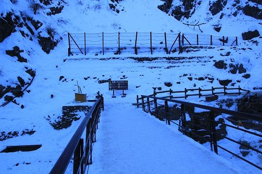 苑内、遊歩道共に積雪になっています。多くの方が行き交うので、踏み固まりすべりやすくなります。足元の装備は、スノーブーツや冬用の長靴など冬道に適したモノにしてください。