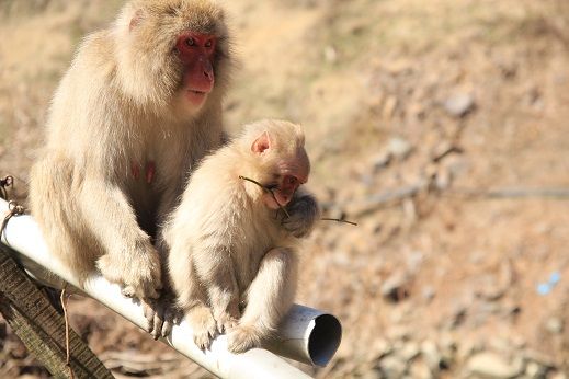 近しい家系です。サルたちにお父さんはいないので、そういった感覚で甘えているわけではありませんが、オスの方もよく面倒を見ているのでなついているようです。