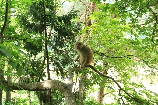 綺麗な風景の中、ハルゼミの鳴き声を聞いているのは穏やかな気持ちになります。ですが、葉が生い茂ってきた分サルの姿をとらえ辛く、ハルセミの鳴き声が大きくてサルたちの鳴き声が聞き取り辛くもあります。