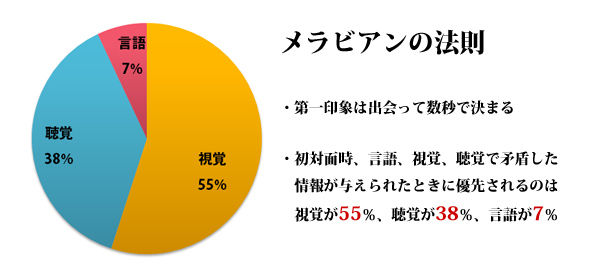 100%ではないにしても、人の第一印象は視覚が55%を占めていると言われています。
